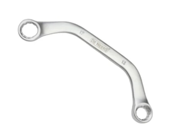 C - SPANNER - HALF MOON 14x17mm (Chrome Vanadium Steel) Type Of Spanner Ring Spanner Size 14x17mm Brand DE NEERS Packaging Box Material Chrome Vanadium Steel Measurement System Metric Finishing CHROME Color Silver Warranty 1 Year C-SPANNER HALF MOON, SIZE- 14x17mm Duly Hardened & Tempered Chrome Vanadium Steel