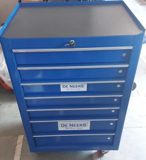 Brand DENEERS Material Mild Steel Usage/Application Industrial Model Name/Number 7 DRAWER TROLLEY WITH WHEELS Color BLUE Number Of Drawers 7 Length 675MM Country of Origin Made in India * DIMENSIONS WITH WHEELS: HEIGHT IN MM- 1070 WIDTH IN MM- 500 LENGTH IN MM-675 *CONVENIENT TO MOVE *HSN 9403 * AVAILABLE IN 5 DRAWERS ALSO.